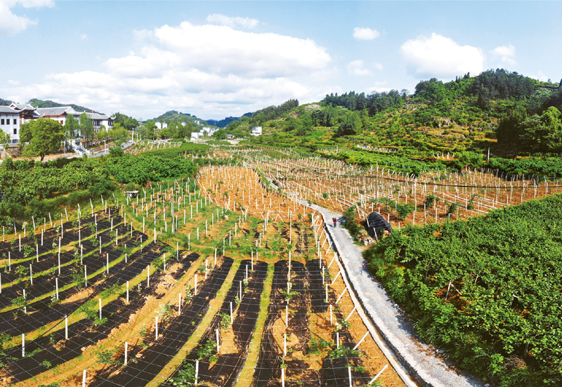 2013年11月3日,中共中央總書記習(xí)近平來到湖南省鳳凰縣菖蒲塘村考察調(diào)研,了解村里圍繞扶貧開發(fā)發(fā)展特色產(chǎn)業(yè)的情況,強調(diào)扶貧開發(fā)要同做好農(nóng)業(yè)農(nóng)村農(nóng)民工作結(jié)合起來,同發(fā)展基本公共服務(wù)結(jié)合起來,同保護生態(tài)環(huán)境結(jié)合起來,向增強農(nóng)業(yè)綜合生產(chǎn)能力和整體素質(zhì)要效益。6年多來,菖蒲塘人牢記總書記囑托,以發(fā)展壯大果業(yè)為依托,走上了一條農(nóng)村美、農(nóng)業(yè)興、農(nóng)民富的新路子。圖為菖蒲塘村的農(nóng)業(yè)科技示范園。攝于2020年5月。 新華社記者 陳思汗/攝