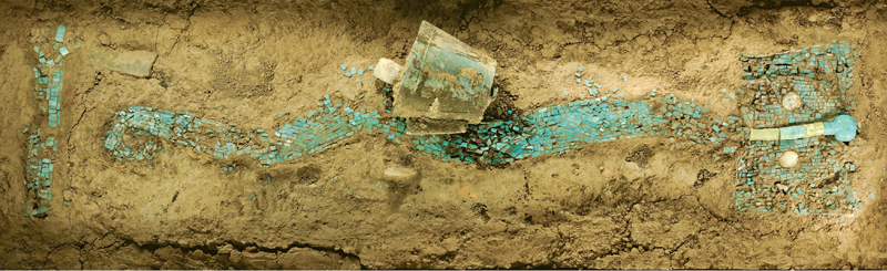 夏文化探索是中國考古學(xué)研究的重大命題,也是實(shí)證中華文明5000多年歷史的關(guān)鍵環(huán)節(jié)。自20世紀(jì)50年代以來在河南偃師二里頭遺址發(fā)現(xiàn)的二里頭文化,經(jīng)碳十四測(cè)年,確認(rèn)遺址所處年代為公元前1880年至公元前1520年,屬于文獻(xiàn)記載的夏王朝紀(jì)年。中國社會(huì)科學(xué)院考古研究所對(duì)二里頭遺址的考古發(fā)掘,發(fā)現(xiàn)了大型建筑基址、祭祀遺址、作坊區(qū)和貴族墓葬區(qū),出土青銅禮器、玉禮器、綠松石龍形器等珍貴文物,顯示出這一時(shí)期社會(huì)已進(jìn)入王國時(shí)代,二里頭遺址也明顯具有都邑聚落性質(zhì)。圖為2002年二里頭遺址出土的綠松石龍形器。 二里頭夏都遺址博物館供圖