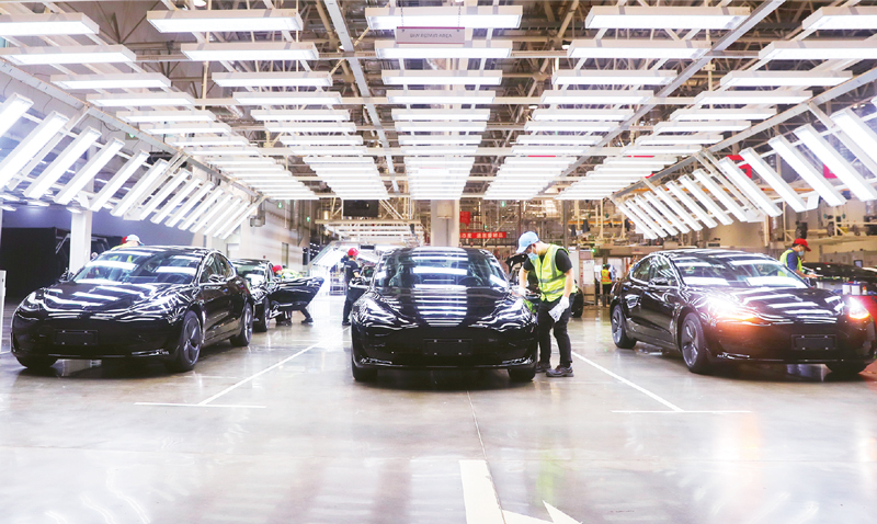 2020年12月,首批出口歐洲的7000多輛中國制造的特斯拉汽車部分抵達比利時澤布呂赫港,銷往德國、法國、意大利等國家。美國品牌、中國制造、出口歐洲,特斯拉汽車的例子再次證明,各國互聯(lián)互通、合作共贏的趨勢不可逆轉(zhuǎn)。圖為工作人員在特斯拉上海超級工廠內(nèi)作業(yè)。 新華社記者 丁汀/攝