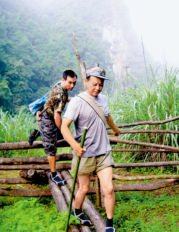 2014年,王新法(前)在湖南省石門縣薛家村考察。 新華社發(fā)