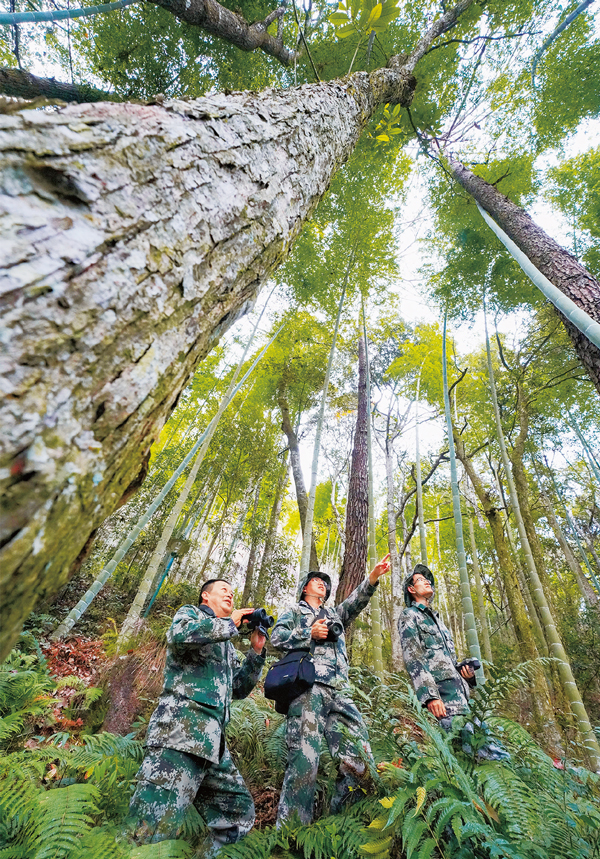 三明林改,緊緊圍繞如何實現(xiàn)“綠水青山就是金山銀山”,創(chuàng)新林權(quán)流轉(zhuǎn)機制和林業(yè)產(chǎn)業(yè)發(fā)展機制,讓廣大林農(nóng)守護(hù)綠水青山,換來金山銀山。2019年,三明市實現(xiàn)林業(yè)總產(chǎn)值1146億元,真正把森林資源變成了“水庫、錢庫和糧庫”。圖為將樂縣龍棲山國家級自然保護(hù)區(qū)護(hù)林員進(jìn)山巡護(hù)森林。 三明市融媒體中心記者 周志鴻/攝