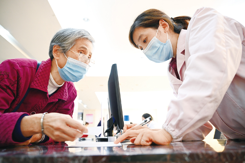 2012年以來,三明市勇于涉“深水區(qū)”、敢于啃“硬骨頭”,闖出了一條破解醫(yī)改難題的新路子。圖為福建省三明市第一醫(yī)院的醫(yī)保辦工作人員(右)向前來咨詢藥品報銷問題的居民講解相關(guān)政策。 新華社記者 姜克紅/攝
