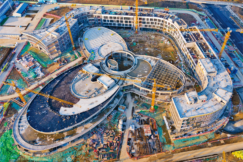 科技自立自強(qiáng)是促進(jìn)發(fā)展大局的根本支撐。圖為2020年12月16日,位于安徽省合肥市廬陽(yáng)區(qū)的中科院聚變堆主機(jī)關(guān)鍵系統(tǒng)綜合研究設(shè)施項(xiàng)目主建筑1—4號(hào)科研樓的4號(hào)樓最后一處正在封頂施工。聚變堆主機(jī)關(guān)鍵系統(tǒng)綜合研究設(shè)施是《國(guó)家重大科技基礎(chǔ)設(shè)施建設(shè)“十三五”規(guī)劃》優(yōu)先布局的大科學(xué)工程項(xiàng)目之一,為我國(guó)開(kāi)展聚變堆核心部件研發(fā)和建設(shè)提供技術(shù)基礎(chǔ)。 人民圖片 阮雪楓/攝
