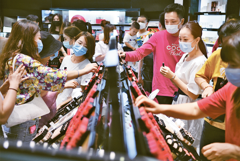 構(gòu)建新發(fā)展格局,必須堅(jiān)持?jǐn)U大內(nèi)需這個(gè)戰(zhàn)略基點(diǎn),把擴(kuò)大消費(fèi)同改善人民生活品質(zhì)結(jié)合起來(lái)。圖為2020年10月5日,游客在海南三亞國(guó)際免稅城購(gòu)物。三亞國(guó)際免稅城是以免稅為主題,融商業(yè)、餐飲、娛樂(lè)、休閑、購(gòu)物于一體的旅游零售商業(yè)綜合體,對(duì)于引導(dǎo)境外消費(fèi)回流,推動(dòng)消費(fèi)升級(jí),滿足消費(fèi)需求,帶動(dòng)旅游消費(fèi)市場(chǎng)都有很大的促進(jìn)作用。 新華社記者 郭程/攝