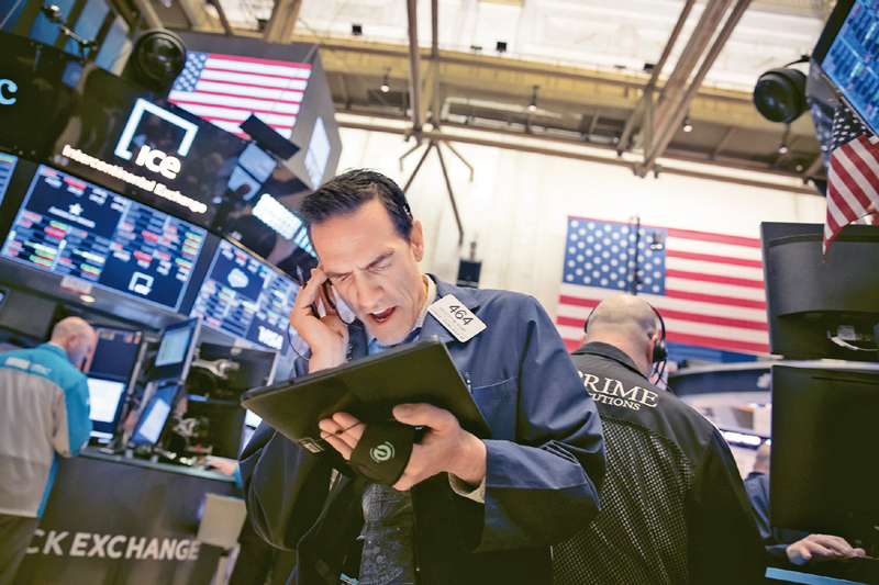 美國(guó)股市于當(dāng)?shù)貢r(shí)間2020年3月9日、3月12日、3月16日、3月18日觸發(fā)熔斷機(jī)制,10天之內(nèi)4次熔斷。此前,美股僅在1997年發(fā)生過(guò)一次熔斷。圖為2020年3月18日,交易員在美國(guó)紐約證券交易所工作。 新華社發(fā) 郭克/攝