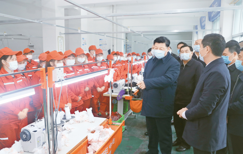 2020年4月20日至23日,中共中央總書(shū)記、國(guó)家主席、中央軍委主席習(xí)近平在陜西考察。這是4月21日,習(xí)近平在安康市平利縣老縣鎮(zhèn)錦屏社區(qū)考察社區(qū)毛絨玩具廠,了解搬遷群眾就業(yè)情況。 新華社記者 鞠鵬/攝