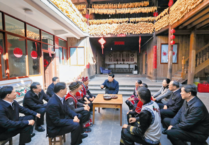 2020年1月19日至21日,中共中央總書(shū)記、國(guó)家主席、中央軍委主席習(xí)近平來(lái)到云南,看望慰問(wèn)各族干部群眾,向全國(guó)人民致以新春祝福。這是19日下午,習(xí)近平在騰沖市清水鄉(xiāng)三家村中寨司莫拉佤族村,同村民李發(fā)順一家聊家常,詳細(xì)詢問(wèn)脫貧情況。 新華社記者 鞠鵬/攝