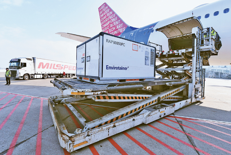 中國新冠疫苗上市以來,世界多國積極采購,給中國疫苗投下“信任票”。圖為2021年1月16日,在塞爾維亞首都貝爾格萊德,機場工作人員卸載首批中國新冠疫苗。 新華社發(fā) 普雷德拉格·米洛薩夫列維奇/攝
