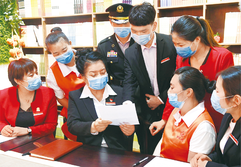 圓方集團(tuán)是河南省鄭州市一家綜合服務(wù)型民營企業(yè),現(xiàn)有員工6萬人,其中黨員500多名。2020年,黨的十九大代表、圓方集團(tuán)黨委書記薛榮給習(xí)近平總書記寫信,代表全體職工匯報(bào)了堅(jiān)守本職崗位、積極參與抗疫的情況,表達(dá)了共擔(dān)責(zé)任、共克時(shí)艱的決心。圖為集團(tuán)員工在學(xué)習(xí)習(xí)近平總書記2020年4月30日的回信?!∪珖h建研究會(huì)供圖 周甬/攝