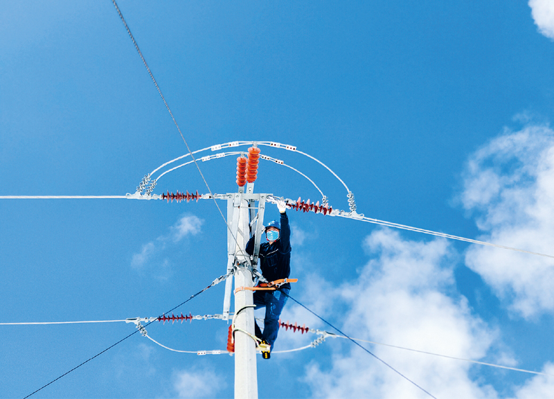 我國經(jīng)濟(jì)循環(huán)逐步暢通,有力促進(jìn)了經(jīng)濟(jì)恢復(fù)。圖為2021年4月7日,在新疆精河縣大河沿子鎮(zhèn),新疆博爾塔拉供電公司工作人員對專供線路35千伏開展線路檢修工作。 人民圖片 賽永杰/攝