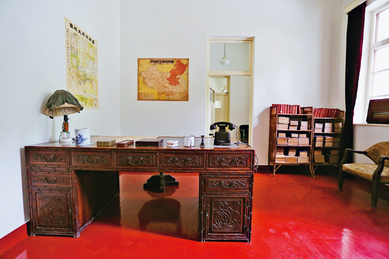 1949年3月25日至9月21日,中共中央在北京香山雖然只有半年時(shí)間,但這里是我們黨領(lǐng)導(dǎo)解放戰(zhàn)爭(zhēng)走向全國(guó)勝利、新民主主義革命取得偉大勝利的總指揮部,是中國(guó)革命重心從農(nóng)村轉(zhuǎn)向城市的重要標(biāo)志,在中國(guó)共產(chǎn)黨歷史、中華人民共和國(guó)歷史上具有非常重要的地位。雙清別墅是毛澤東同志當(dāng)年辦公居住的地方,近年來進(jìn)行了保護(hù)修繕,里面辦公室、會(huì)客室、臥室、飯廳的家具陳設(shè),床上的書籍和墻上的《中國(guó)解放區(qū)現(xiàn)勢(shì)圖》、《最新北平大地圖》等的擺放,都一如原樣。圖為毛澤東同志當(dāng)年的辦公室。 北京市委宣傳部供圖