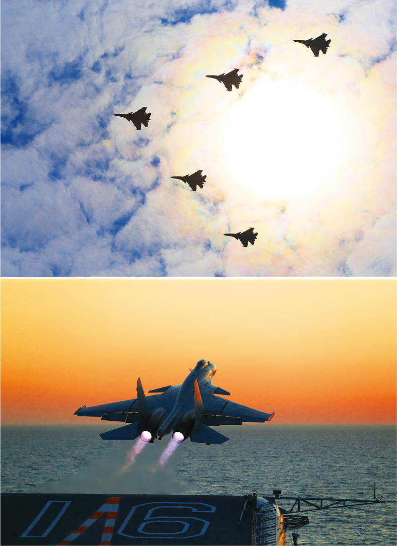艦載戰(zhàn)斗機是航空母艦的核心裝備之一,是現(xiàn)代海軍“以空制海”的主要手段。殲15雙發(fā)重型艦載戰(zhàn)斗機是我國航空裝備建設(shè)和航空科技創(chuàng)新的又一重大成果。殲15飛機列裝部隊后,隨“遼寧號”航母在渤海、黃海、東海、南海及西太平洋進行了全天候復(fù)雜海況條件下作戰(zhàn)訓(xùn)練,還多次參加閱兵活動。上圖為5架殲15飛機為執(zhí)行“紀念中國人民抗日戰(zhàn)爭暨世界反法西斯戰(zhàn)爭勝利70周年閱兵”任務(wù)而進行編隊飛行演練。下圖為殲15飛機從“遼寧號”航母上起飛。 沈陽飛機設(shè)計研究所 盧剛/攝