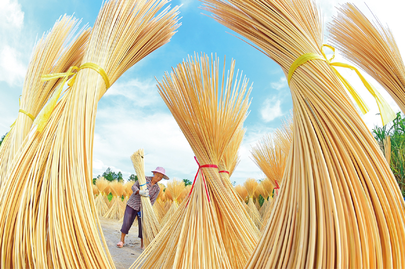 近年來,江西省贛州市會(huì)昌縣因地制宜利用偏遠(yuǎn)山區(qū)深度貧困村4萬余畝速生毛竹資源,形成毛竹種植、生產(chǎn)加工、銷售的竹產(chǎn)業(yè)鏈,走出一條保護(hù)生態(tài)環(huán)境和發(fā)展綠色經(jīng)濟(jì)脫貧的路子。圖為2020年7月11日,在會(huì)昌縣周田鎮(zhèn)河墩村,村民將晾曬好的竹筷半成品運(yùn)回烤房進(jìn)一步烘干。 人民圖片 朱海鵬/攝