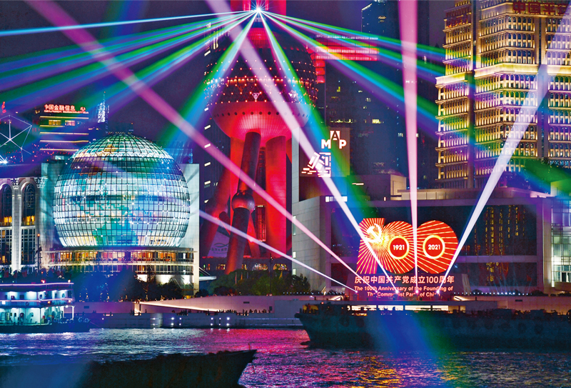 2021年6月19日,上海慶祝建黨百年燈光系列活動拉開序幕,黃浦江畔,燈光璀璨。 人民視覺 茅正元/攝