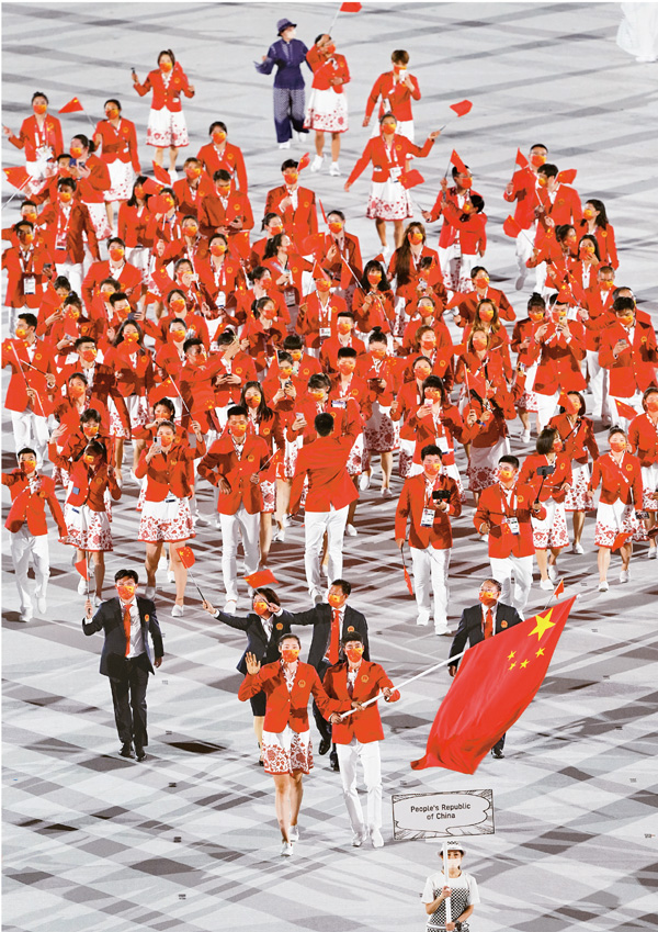 2021年7月23日,第32屆夏季奧林匹克運動會開幕式在日本東京舉行。圖為中國體育代表團(tuán)在開幕式上入場。 新華社記者 許暢/攝