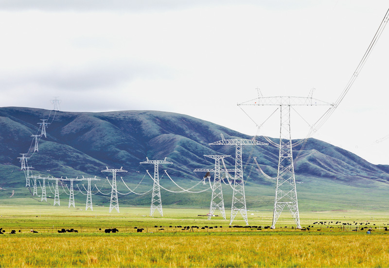 2020年7月15日,世界上首條主要輸送風(fēng)光新能源的青豫特高壓開始輸電。源自青藏高原的太陽能、風(fēng)能等清潔電力,跨過崇山峻嶺,源源不斷直送中原大地。隨著配套電源建設(shè),青豫特高壓預(yù)計到2023年底可實現(xiàn)滿功率運行。屆時這條電力“高速公路”每年將輸送綠電412億千瓦時,相當(dāng)于1/3個三峽大壩的發(fā)電量。圖為2021年6月17日在青海省黃南藏族自治州河南蒙古族自治縣拍攝的青豫特高壓直流工程。 新華社發(fā) 謝莉蓉/攝