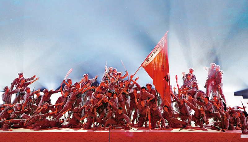長征這一人類歷史上的偉大壯舉,留給我們最可寶貴的精神財富,就是偉大長征精神。2021年6月28日晚,慶祝中國共產(chǎn)黨成立100周年文藝演出《偉大征程》在國家體育場盛大舉行。這是戲劇與舞蹈《長征》。 新華社記者 陳曄華/攝