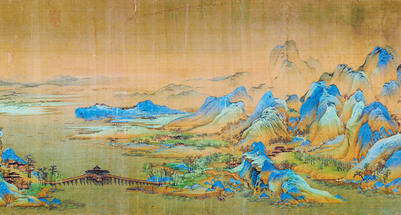 歷代文人大家筆墨描繪的自然山水,無不蘊含著對“平和仁厚、溫良敦實”等傳統(tǒng)美德的歌頌與贊揚。這些理念或鐫刻在雄渾偉岸的山體上,或蘊藏于大氣磅礴的畫卷中,千百年來無聲無息地蘊育著中華民族的寶貴精神品格,培育著中國人的崇高價值追求。位于泰山岱頂大觀峰的石刻“與國咸寧,體乾潤物”,祈頌著國家安寧,萬物滋潤。泰山月牙亭的石刻“從善如登”,則是道德信念的引導和美好心靈的激贊?!肚Ю锝綀D》是中國美術史上唯一以一幅畫而名垂千古的北宋王希孟之鴻篇杰作,為中國十大傳世名畫之一。該畫作以長卷形式,立足傳統(tǒng),畫面細致入微,煙波浩渺的江河、層巒起伏的群山構成了一幅美妙的江南山水圖,漁村野市、水榭亭臺、茅庵草舍、水磨長橋等靜景穿插著捕魚、駛船、游玩、趕集等動景,動靜結合恰到好處。畫作以江山天下的視角描繪了我國遼闊疆域和平繁榮的山水景象,與中華民族中道平和、天下大同的審美追求一以貫之。同時,文化審美與“江山德治”高度契合,深刻蘊含著“明理崇德”的高尚社會精神風貌。