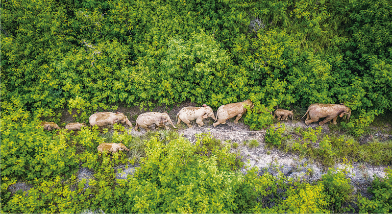 原本棲息在云南省西雙版納傣族自治州境內(nèi)的一群野生亞洲象北上及返回之旅,引發(fā)全球關(guān)注。中國(guó)政府與民眾攜手護(hù)象的行動(dòng)得到世界點(diǎn)贊。圖為2021年8月9日在云南省玉溪市元江縣境內(nèi)拍攝的象群(無(wú)人機(jī)照片)。 新華社記者 胡超/攝