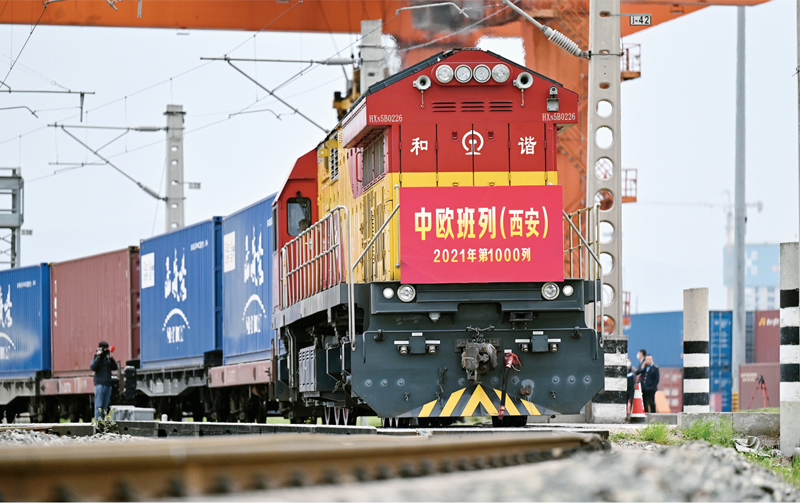 圖為2021年4月13日,X9041次中歐班列(西安)從西安國際港站出發(fā)。這是2021年陜西開行的第1000列中歐班列。從統(tǒng)籌推進(jìn)21個(gè)自貿(mào)試驗(yàn)區(qū)建設(shè)到高質(zhì)量高標(biāo)準(zhǔn)建設(shè)海南自由貿(mào)易港,從頒布實(shí)施外商投資法到簽署區(qū)域全面經(jīng)濟(jì)伙伴關(guān)系協(xié)定(RCEP),從開創(chuàng)性的進(jìn)博會到規(guī)模盛大的服貿(mào)會……更高水平開放型經(jīng)濟(jì)新體制加快形成。根據(jù)“十四五”規(guī)劃和2035年遠(yuǎn)景目標(biāo)綱要,我國將堅(jiān)持實(shí)施更大范圍、更寬領(lǐng)域、更深層次對外開放,依托我國超大規(guī)模市場優(yōu)勢,促進(jìn)國際合作,實(shí)現(xiàn)互利共贏,推動(dòng)共建“一帶一路”行穩(wěn)致遠(yuǎn),推動(dòng)構(gòu)建人類命運(yùn)共同體?!⌒氯A社記者 李一博/攝