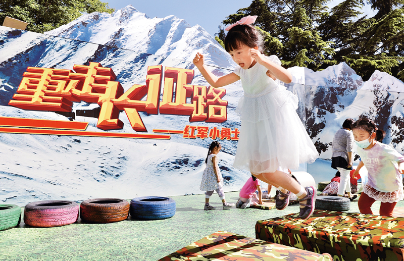 2021年5月29日至6月1日,中國兒童中心舉辦“童心向黨 幸福成長”為主題的游園活動(dòng),攜手廣大少年兒童共度快樂有意義的兒童節(jié)。圖為小朋友參加“重走長征路”親子活動(dòng)。 新華社記者 張玉薇/攝