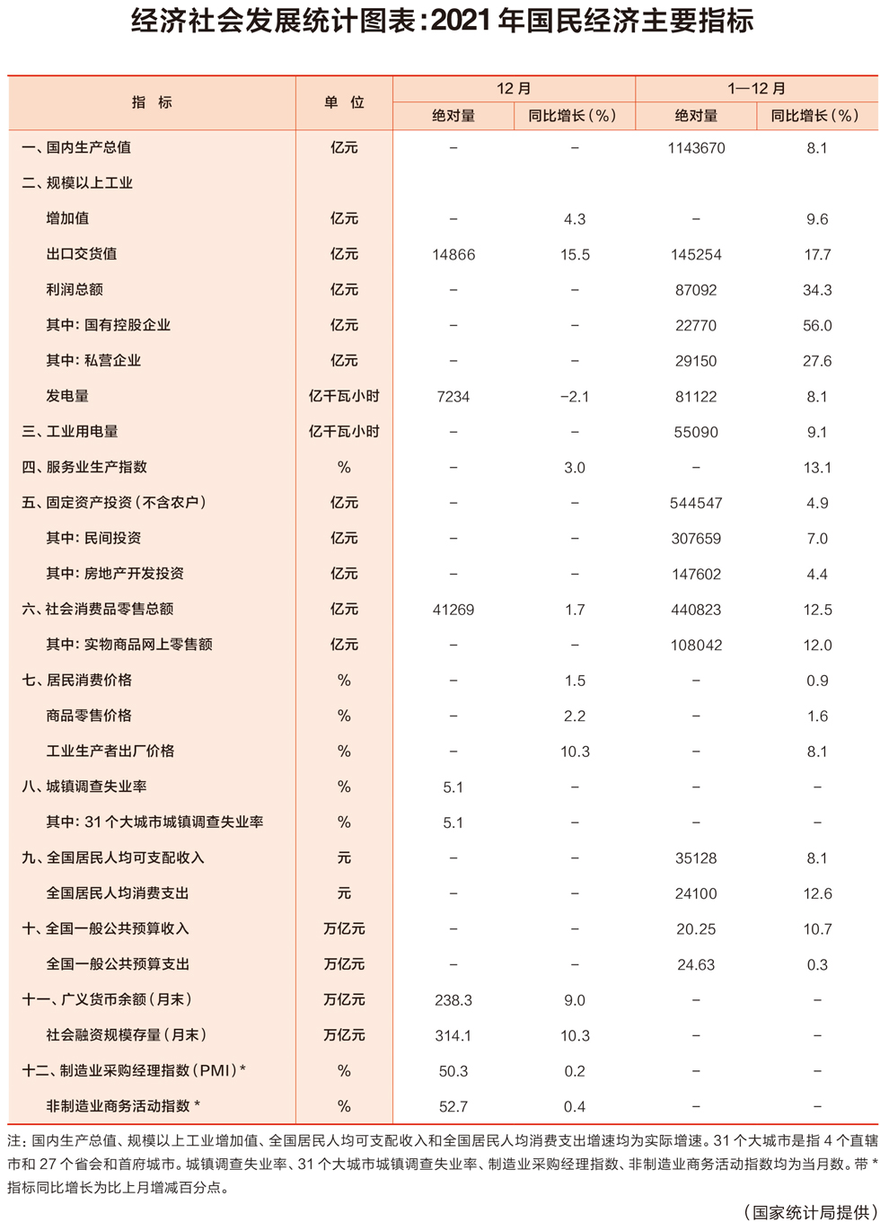 經(jīng)濟(jì)社會發(fā)展統(tǒng)計圖表:2021年國民經(jīng)濟(jì)主要指標(biāo)