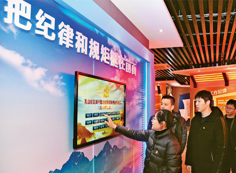 山東省乳山市近年來把加強廉政警示教育作為深入推進全面從嚴治黨的重要抓手,依托乳山市廉政警示教育基地,通過正面導向與反面警示相結(jié)合,以案釋紀、以文施教、以圖示警,筑牢廉政“防火墻”。圖為2019年12月13日,乳山市黨員干部在廉政警示教育基地接受廉政警示教育。 新華社記者 郭緒雷/攝