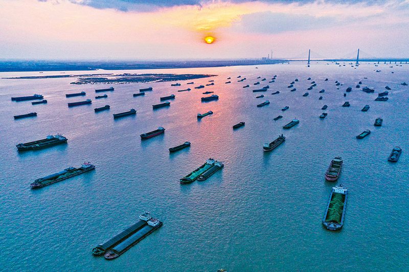 向江向海向未來,江蘇省南通市的高質(zhì)量發(fā)展彰顯長三角一體化發(fā)展新氣象。這是2021年10月25日無人機(jī)拍攝的長江南通段。 新華社記者 李博/攝