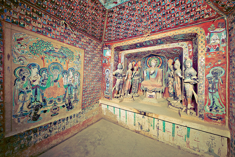敦煌莫高窟1961年由國務院公布為第一批全國重點文物保護單位,1987年作為我國首批申報項目列入聯(lián)合國教科文組織世界遺產(chǎn)名錄。圖為敦煌莫高窟第322窟的壁畫和彩塑?!椅奈锞止﹫D