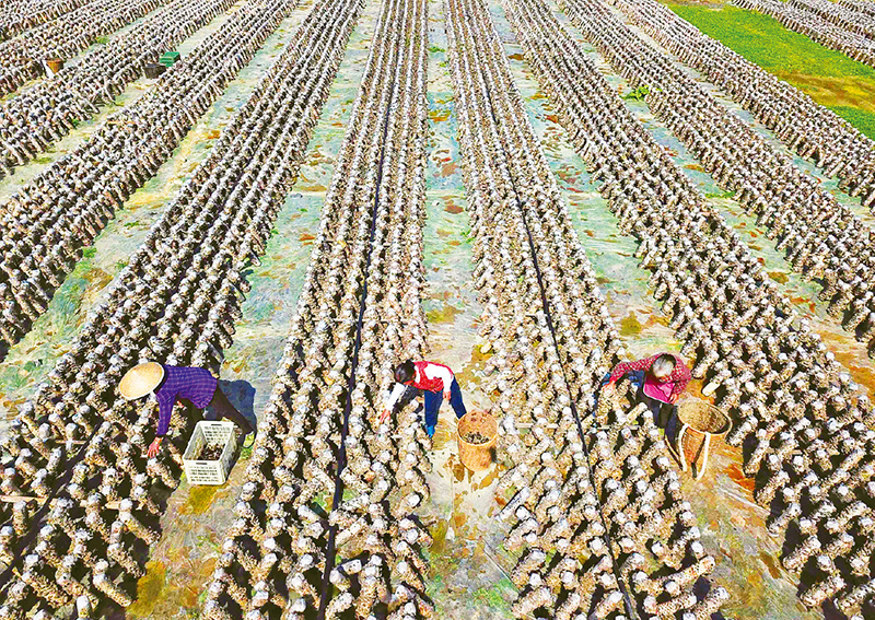 近年來,貴州省圍繞產(chǎn)業(yè)選擇、培訓(xùn)農(nóng)民、技術(shù)服務(wù)、資金籌措、組織方式、產(chǎn)銷對接、利益聯(lián)結(jié)、基層黨建等“八要素”,通過“減、融、服”創(chuàng)新推進(jìn)農(nóng)村產(chǎn)業(yè)結(jié)構(gòu)調(diào)整,既帶動了農(nóng)戶增收,也推動了特色產(chǎn)業(yè)做大做強(qiáng)。圖為農(nóng)民在貴州省銅仁市萬山區(qū)敖寨鄉(xiāng)中華山村的食用菌基地里采摘木耳。 新華社記者 楊文斌/攝