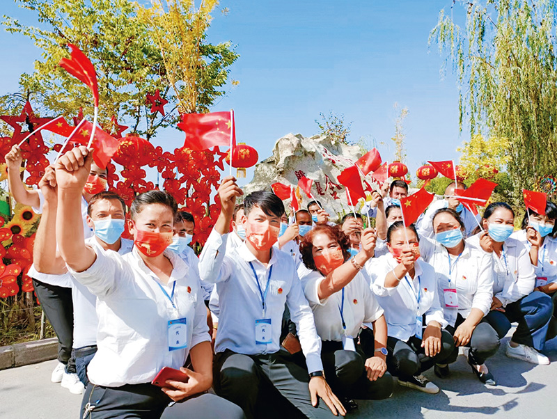 圖為2021年9月30日,新疆溫宿縣克孜勒鎮(zhèn)人大代表開(kāi)展“我和國(guó)旗合個(gè)影”主題活動(dòng),表達(dá)對(duì)祖國(guó)的美好祝福,喜迎新中國(guó)成立72周年。 新疆維吾爾自治區(qū)人大常委會(huì)供圖