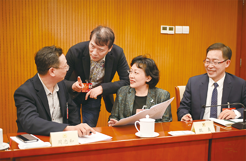 2022年3月5日,無黨派界別的四位委員圍繞政協(xié)常委會工作報告中提到的“推動廣大政協(xié)委員更好成為黨的政策宣傳員、思想政治引領(lǐng)員、界別群眾貼心人”展開熱烈討論。 人民政協(xié)報記者 齊波/攝