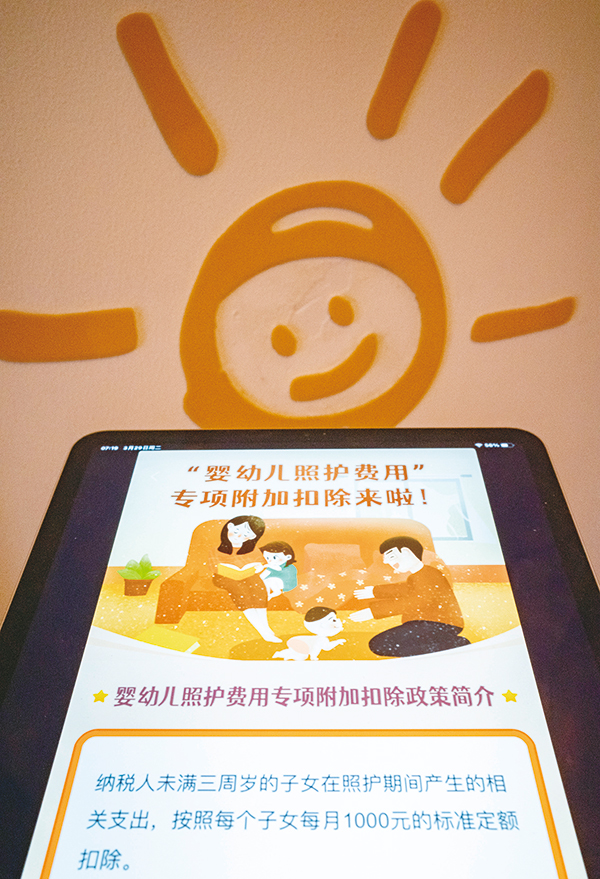 今年財政政策將堅持階段性措施和制度性安排相結(jié)合,減稅與退稅并舉,延續(xù)實施部分2021年到期的階段性減稅降費政策,研究出臺新的政策舉措。我國出臺嬰幼兒照護費用專項附加扣除政策,從2022年1月1日起實施。圖為2022年3月29日,中國“個人所得稅”官方應(yīng)用程序顯示出嬰幼兒照護費用專項附加扣除政策簡介,從當日起可以填報?!≈行律缬浾?侯宇/攝