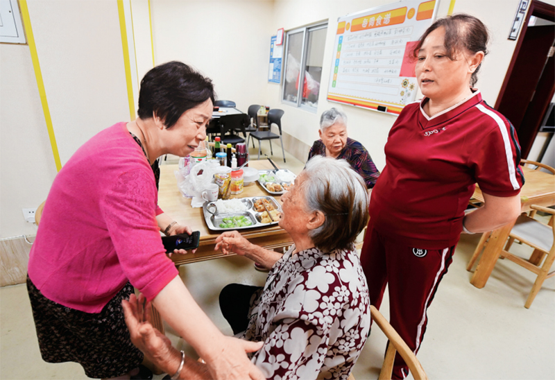 圖為2021年6月23日,林丹(左一)在社區(qū)居家養(yǎng)老服務(wù)中心向老人了解飲食健康情況。 新華社記者 林善傳/攝
