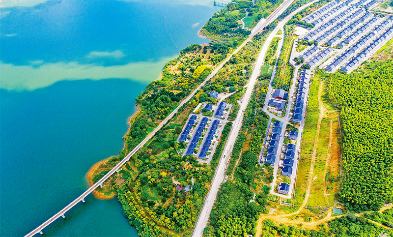 2021年6月,《中共中央 國務院關(guān)于支持浙江高質(zhì)量發(fā)展建設(shè)共同富裕示范區(qū)的意見》發(fā)布,賦予浙江重要示范改革任務。圖為2021年9月12日,浙江省湖州市長興縣小浦鎮(zhèn)合溪新村風光如畫?!∏笫菆D片 譚云俸/攝