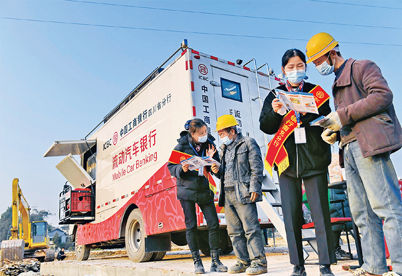 服務(wù)實(shí)體經(jīng)濟(jì)是金融的天職和宗旨,也是防范化解金融風(fēng)險(xiǎn)的根本舉措。中國(guó)銀保監(jiān)會(huì)持續(xù)引導(dǎo)金融機(jī)構(gòu)強(qiáng)化小微企業(yè)、“三農(nóng)”和扶貧等領(lǐng)域金融支持。圖為2021年1月14日,在四川省南充市順慶區(qū)金臺(tái)鎮(zhèn)南田寺村的川渝柑橘現(xiàn)代種業(yè)園項(xiàng)目建設(shè)現(xiàn)場(chǎng),中國(guó)工商銀行四川南充分行“流動(dòng)汽車(chē)銀行”巴士開(kāi)進(jìn)了工地,為農(nóng)民工制卡、補(bǔ)卡、宣傳金融知識(shí)等?!?/font>中新社發(fā) 李向雨/攝