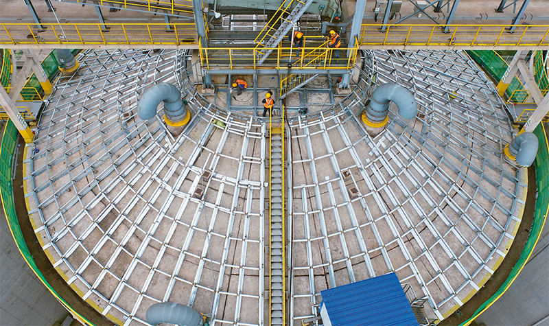 近年來,我國(guó)糧食倉(cāng)儲(chǔ)設(shè)施規(guī)模不斷增加、功能顯著提升、儲(chǔ)備能力明顯增強(qiáng),總體達(dá)到世界較先進(jìn)水平。圖為2021年9月25日,工人在中儲(chǔ)糧唐山直屬庫(kù)糧食倉(cāng)儲(chǔ)項(xiàng)目建設(shè)工地施工。 新華社記者 楊世堯/攝