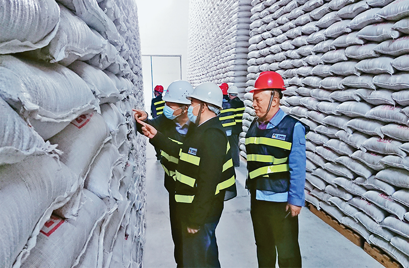 國(guó)家儲(chǔ)備是國(guó)家治理的重要物質(zhì)基礎(chǔ),要不斷提升物資儲(chǔ)備系統(tǒng)效能。圖為2020年10月19日,國(guó)家糧食和物資儲(chǔ)備局遼寧局在遼寧中糖物流有限公司,現(xiàn)場(chǎng)督導(dǎo)檢查中央儲(chǔ)備糖儲(chǔ)存情況?!?guó)家糧食和物資儲(chǔ)備局供圖