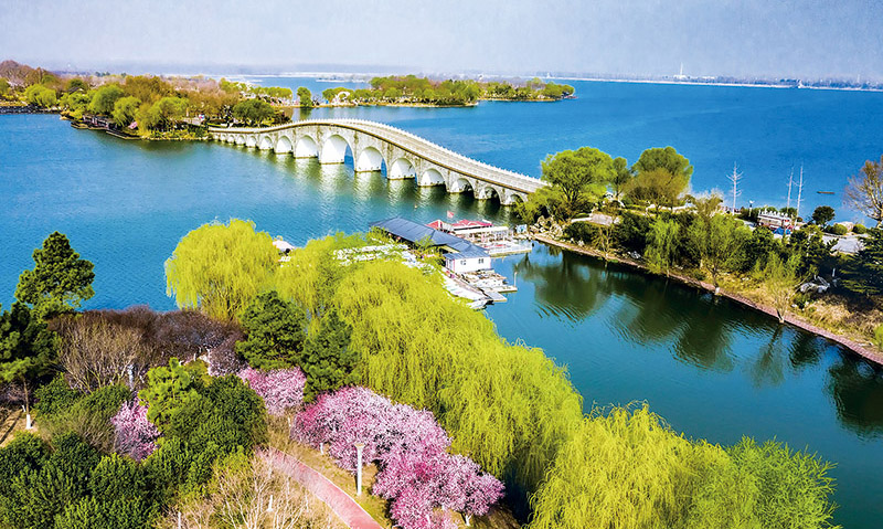 近年來,江蘇省東海縣積極踐行“綠水青山就是金山銀山”理念,濕地資源的生態(tài)、經(jīng)濟、社會效益逐步顯現(xiàn)。圖為2022年3月24日拍攝的東??h西雙湖國家級濕地公園。 自然資源部供圖 邵光明/攝
