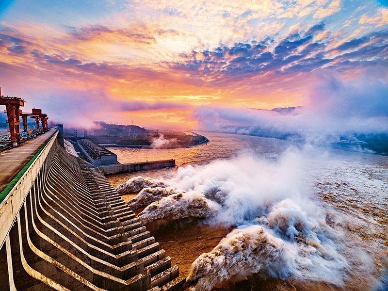 三峽工程是治理和開發(fā)長(zhǎng)江的關(guān)鍵性骨干工程,是當(dāng)今世界綜合規(guī)模最大的水利樞紐工程,具有巨大的防洪、發(fā)電、航運(yùn)、水資源利用等綜合效益。圖為汛期中泄洪的三峽大壩。 黃正平/攝