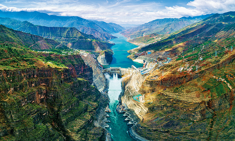 白鶴灘水電站是實(shí)施“西電東送”的國(guó)家重大工程,是當(dāng)今世界在建規(guī)模最大、技術(shù)難度最高的水電工程,共安裝16臺(tái)我國(guó)自主研制的全球單機(jī)容量最大功率百萬(wàn)千瓦水輪發(fā)電機(jī)組。圖為白鶴灘水電站全景。 謝雷/攝