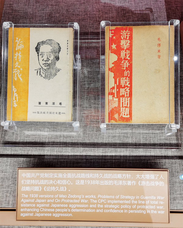 一百年來,黨總是能夠在重大歷史關(guān)頭從戰(zhàn)略上認識、分析、判斷面臨的重大歷史課題,制定正確的政治戰(zhàn)略策略,這是黨戰(zhàn)勝無數(shù)風(fēng)險挑戰(zhàn)、不斷從勝利走向勝利的有力保證。圖為上海中共一大紀念館展出的1938年出版的毛澤東著作《論持久戰(zhàn)》和《游擊戰(zhàn)爭的戰(zhàn)略問題》。 人民視覺供圖