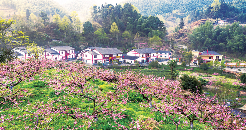 黃桃成為神山村脫貧致富的重要產(chǎn)業(yè)。圖為黃桃花盛開時的美麗山村。 井岡山市委宣傳部供圖