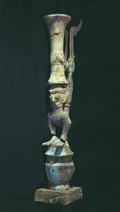 圖為商代晚期的鳥足曲身頂尊神像?!∷拇ㄊ∥奈锟脊叛芯吭汗﹫D 魯海子/攝