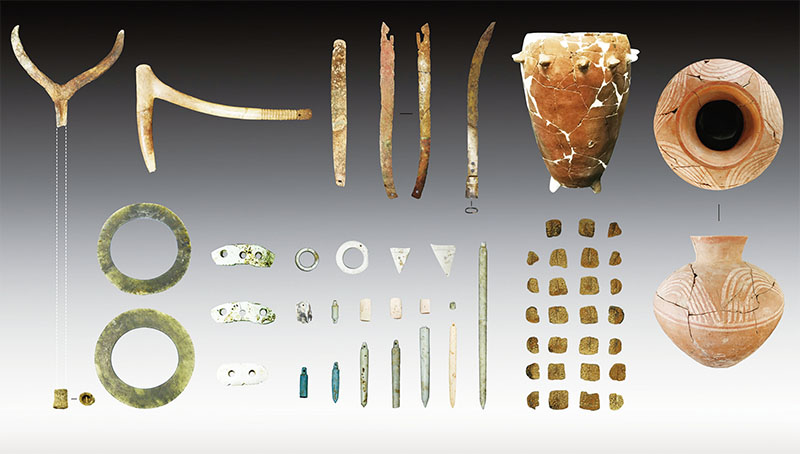圖為山東滕州崗上遺址北區(qū)二次葬大墓出土的典型器物。山東滕州崗上遺址入選2021年度全國十大考古發(fā)現(xiàn)?!⌒氯A社發(fā) 國家文物局供圖