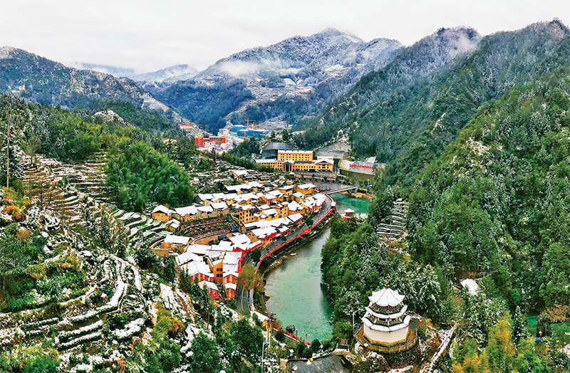 下黨鄉(xiāng)位于閩東大山深處,是福建省寧德市壽寧縣最邊遠(yuǎn)的山鄉(xiāng)。1988年建鄉(xiāng)時,人均年收入不到200元,貧困率達(dá)到70%,是寧德4個特困鄉(xiāng)之一。在福建工作期間,習(xí)近平同志曾“三進(jìn)下黨”調(diào)研指導(dǎo)扶貧工作。在他的長期關(guān)懷和親自推動下,下黨鄉(xiāng)持續(xù)奮斗,實(shí)現(xiàn)了“天塹變通途、舊貌換新顏”。2021年,下黨鄉(xiāng)農(nóng)民人均可支配收入達(dá)到20055元,10個行政村村集體經(jīng)濟(jì)收入均達(dá)20萬元以上。圖為下黨雪景。 福建省委宣傳部供圖