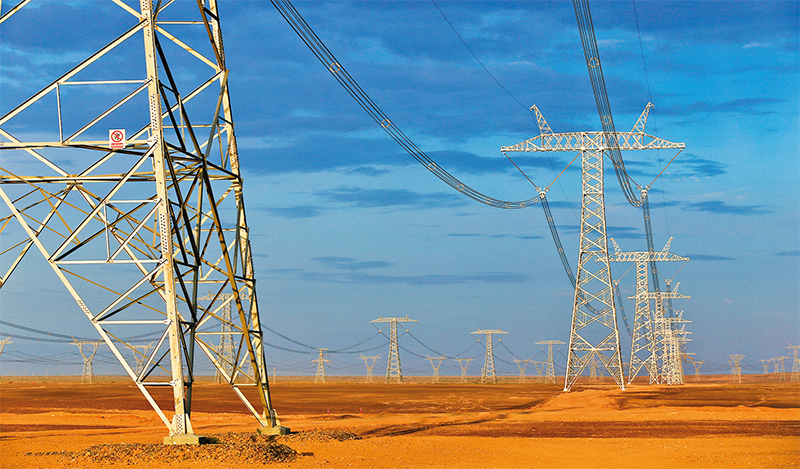 準(zhǔn)東—皖南±1100千伏特高壓直流輸電工程是我國(guó)自主研發(fā)的世界電壓等級(jí)最高、輸電容量最大、輸電距離最遠(yuǎn)的特高壓工程。工程每年可減少華東地區(qū)燃煤消耗約3800萬(wàn)噸,成為連接西部邊疆與華東地區(qū)的“電力絲綢之路”。圖為該工程的新疆哈密段輸電線(xiàn)路。 國(guó)家電網(wǎng)有限公司黨組宣傳部供圖