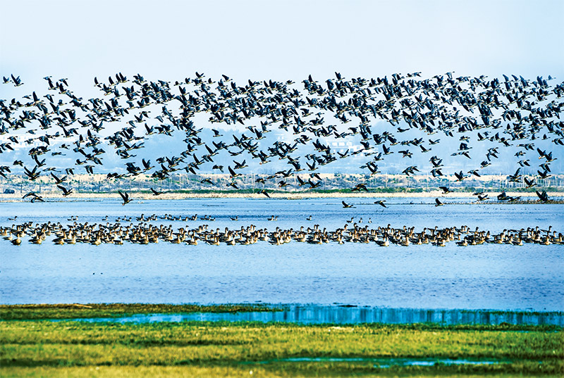 環(huán)境就是民生,青山就是美麗,藍天也是幸福。安徽省堅持生態(tài)優(yōu)先、綠色發(fā)展,扎實推進生態(tài)系統(tǒng)保護修復(fù),不斷增強人民群眾的獲得感、幸福感、安全感。圖為安徽省安慶市宿松縣華陽河湖群的壯闊景觀。 安徽省委宣傳部供圖 雷鳴/攝