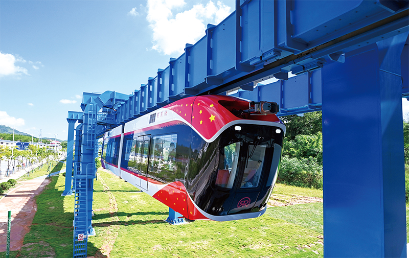2022年8月9日,國(guó)內(nèi)首條稀土永磁磁浮軌道交通工程示范線——“紅軌”在江西省興國(guó)縣順利竣工。這標(biāo)志著一個(gè)安全、便捷、高效、綠色、經(jīng)濟(jì)的中低速、中低運(yùn)量的新制式軌道交通系統(tǒng)誕生。 人民圖片 鮑贛生/攝