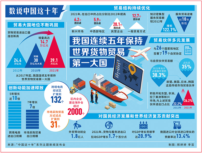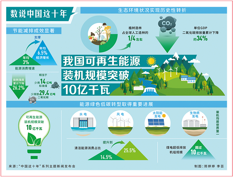 沿著這條康莊大道、人間正道,新時代10年來,我國經(jīng)濟實力又邁上一個大臺階,經(jīng)濟總量由2012年的53.9萬億元上升到2021年的114.4萬億元,占世界經(jīng)濟比重從11.4%上升到超過18%,人均國內(nèi)生產(chǎn)總值從6300美元提升至1.25萬美元;歷史性地解決了困擾中華民族幾千年的絕對貧困問題,現(xiàn)行標(biāo)準(zhǔn)下9899萬農(nóng)村貧困人口全部脫貧,832個貧困縣全部摘帽,12.8萬個貧困村全部出列,提前10年實現(xiàn)《聯(lián)合國2030年可持續(xù)發(fā)展議程》減貧目標(biāo);人民生活水平和質(zhì)量不斷提高,建成了世界上規(guī)模最大的教育體系、社會保障體系和醫(yī)療衛(wèi)生體系,人均預(yù)期壽命由75.4歲提高到了77.9歲,中等收入群體的比重由1/4左右上升到了1/3左右;生態(tài)環(huán)境狀況實現(xiàn)了歷史性的轉(zhuǎn)折,植樹造林占全球人工造林的1/4左右,單位國內(nèi)生產(chǎn)總值二氧化碳排放量累計下降了大約34%,風(fēng)電、光伏發(fā)電等綠色電力的裝機容量和新能源汽車產(chǎn)銷量居世界第一……黨和國家事業(yè)取得的歷史性成就、發(fā)生的歷史性變革,彰顯了中國特色社會主義的強大生機活力,為實現(xiàn)中華民族偉大復(fù)興提供了更為完善的制度保證、更為堅實的物質(zhì)基礎(chǔ)、更為主動的精神力量。實踐深刻昭示:中國特色社會主義是根植于中國大地、反映中國人民意愿、適應(yīng)中國和時代發(fā)展進步要求的科學(xué)社會主義。這條道路,不僅走得對、走得通,而且一定能夠走得穩(wěn)、走得好。